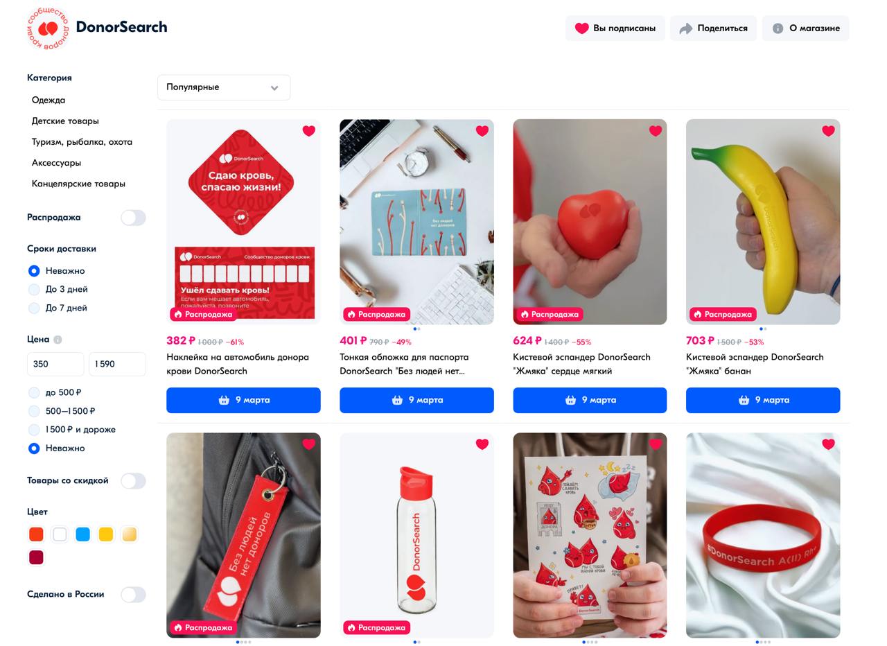 Приобретение мерча — это не просто покупка, а реальная поддержка DonorSearch и популяризация донорства.